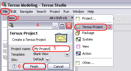 window.The studio opens the new project's model for editing in the Model Editor (on the right), while a list of projects, which includes pre-installed sample projects, is displayed in the Repository Explorer (on the left of the screen). |