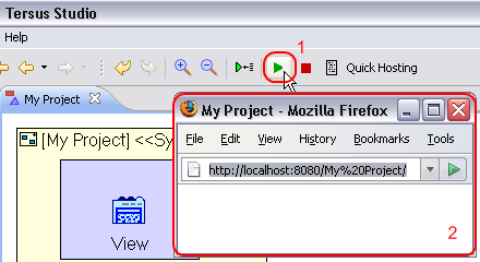 the studio's main toolbar to load your application in the embedded Tersus Server and