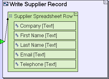 The input to the Write Supplier Record trigger is a single row from the spreadsheet, and so it is time to define its type: