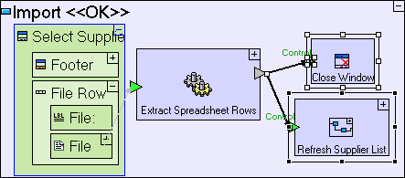 Link the Extract Spreadsheet Rows exit to the trigger of Refresh Supplier List.
