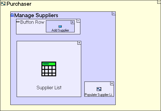 On completing the previous stage, we included in the sample project a new Purchaser perspective with a basic Manage Suppliers view, which manages a Suppliers database table and already implements the display in a table and the addition of new suppliers.