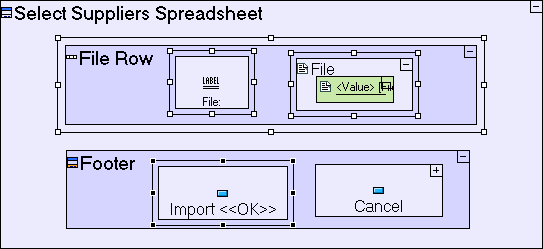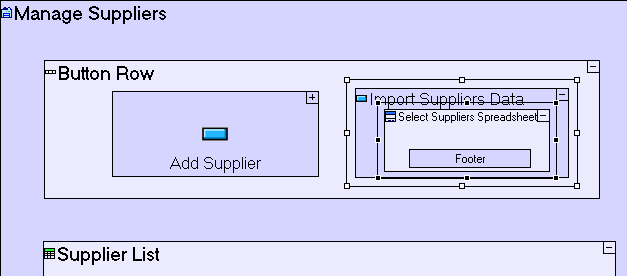 Add Display/Button next to Add Supplier. Name it Import Suppliers Data. Zoom into it.