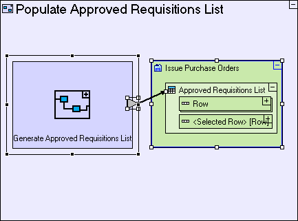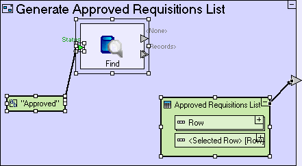 Drag a Row from the repository/outline (this is the row in Approved Requisitions List table). Create a flow linking it to the process exit.