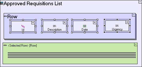Note that the requisition list displayed is different from previously modeled requisition lists, specifically the absence of the Status column. In the subsequent stages we will utilize additional features of the Table display, such as the ability to display computed values, and the ability to perform an action when a row is selected.