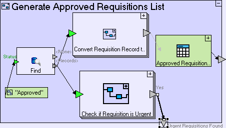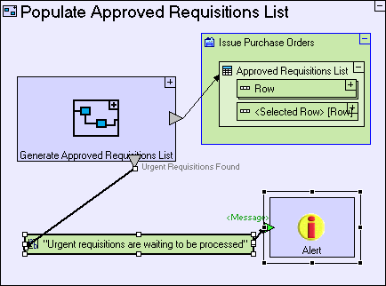 Create a flow linking Generate Approved Requisition List/Urgent Requisition Found to the “Urgent requisitions are waiting to be processed” constant.