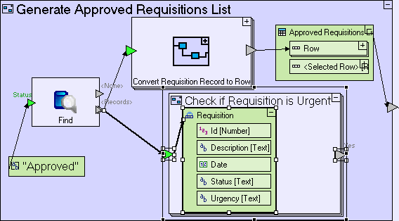 Create flow linking Find/<Records> to the trigger of Check if Requisition is Urgent.