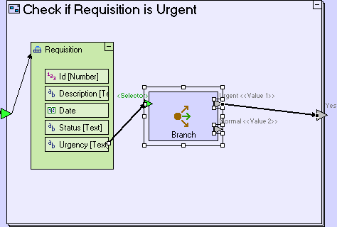 The functionality we are implementing does not need to perform anything when a non-urgent requisition is retrieved; therefore no flow is defined from the Branch/Normal exit. The exit can actually be deleted – we leave it here to improve the model’s readability and for possible future enhancements of the model.