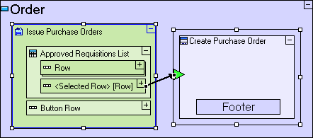 The Create Purchase Order popup will only open if Get Table Selection exits through the <Selected Row> exit, and since the selected Requisition Row data structure is also passed in the flow, we will have immediate access the details of the selected requisition inside Create Purchase Order, without having to retrieve it again.