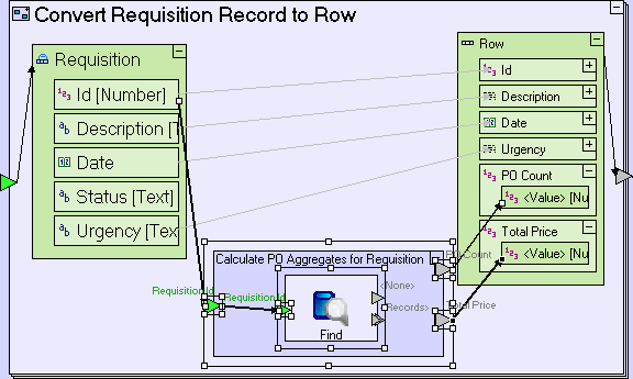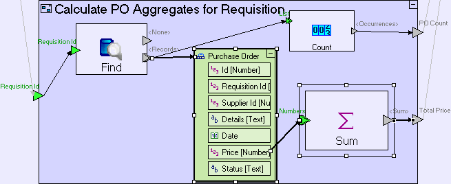 Add a Database/Find template. Add a trigger, named Requisition Id. Create a flow linking the Calculate PO Aggregates for Requisition/Requisition Id trigger to it.