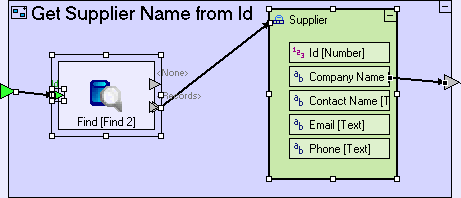 Add a Database/Find. Add to it a trigger and name it Id. Create a flow linking the trigger of Get Supplier Name from Id to Find/Id.