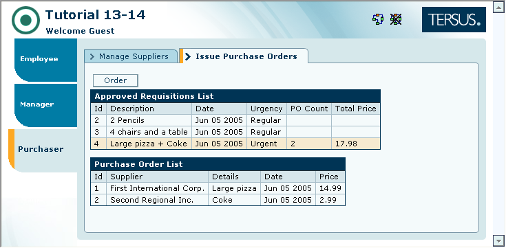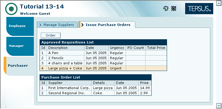 Our first task is to create a process that updates the purchase order list when a requisition is clicked in the requisition list.