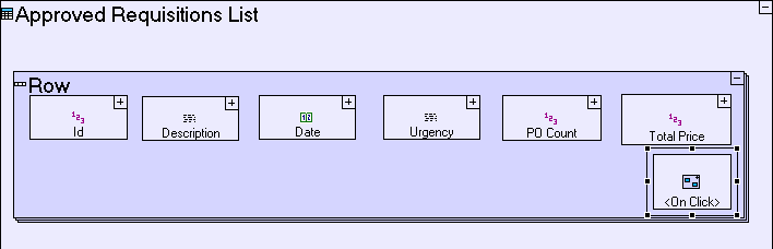 Approved Requisitions List has 2 columns, PO Count and Total Price, which are currently empty. We shall now calculate these aggregate values for each requisition. These aggregates will be calculated on the fly for all requisitions in the requisition list: