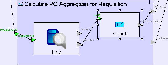 Create a flow linking Count/<Occurrences> to the Calculate PO Aggregates for Requisition/PO Count exit.