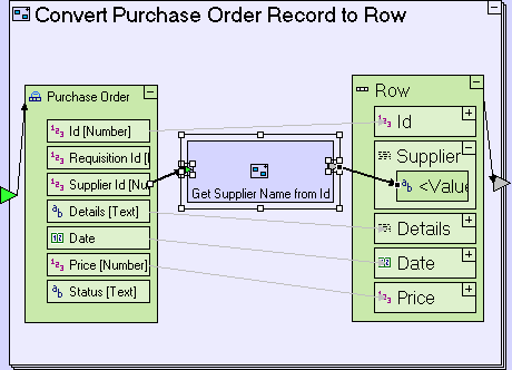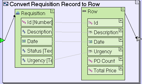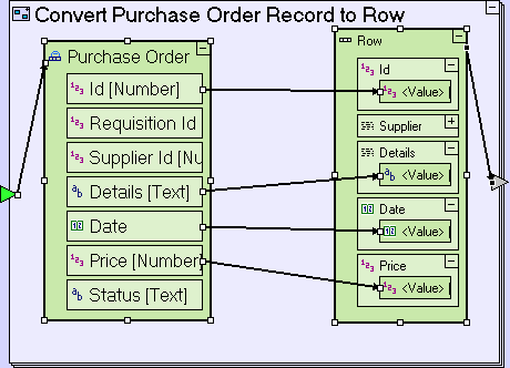 The Convert Purchase Order Record to Row model should look similar to the following: