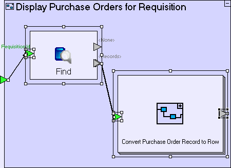 Add a Basic/Action. Name it Convert Purchase Order Record to Row. Mark it repetitive. Add to it a trigger and an exit. Create a flow linking Find/<Records> to the trigger.
