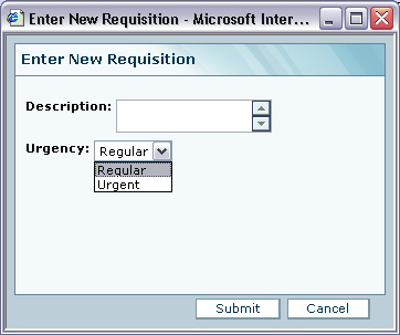 If you now save your work and run the application, the drop down list in the Enter New Requisition popup should allow you to choose between the two possible values Regular and Urgent, as in the following screenshot: