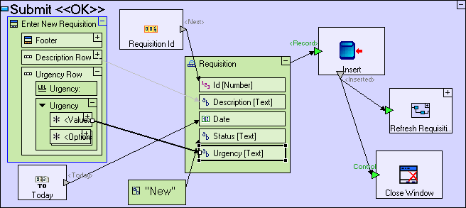 Create a flow from Enter New Requisition/Urgency Row/Urgency/<Value> to Requisition/Urgency.