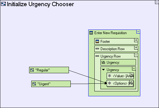 Create a flow from the “Urgent” constant to Enter New Requisition/Urgency Row/Urgency/<Options>.