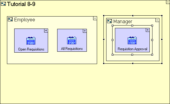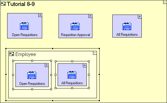 Drag the Open Requisitions view and the All Requisitions view from the repository (or outline) into the Employee system.